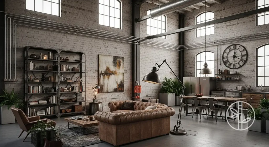 سبک صنعتی، با الهام از کارخانهها و انبارهای قدیمی، بر نمایش عناصر ساختاری ساختمان و استفاده از مواد خام و ناتمام تأکید دارد. این سبک، حس قدرت، تاریخ و اصالت را به فضا میآورد.