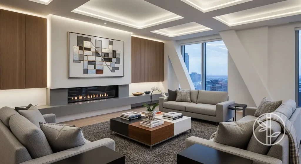 - خطوط تمیز و اشکال هندسی: مبلمان و عناصر دکوراتیو در این سبک، دارای خطوط راست، زوایای تیز و اشکال هندسی ساده هستند.