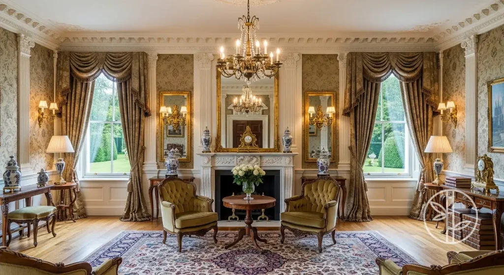 - جزئیات معماری سادهتر: گچبریهای ظریف، قرنیزهای ساده و شومینههای با طراحی مدرنتر.